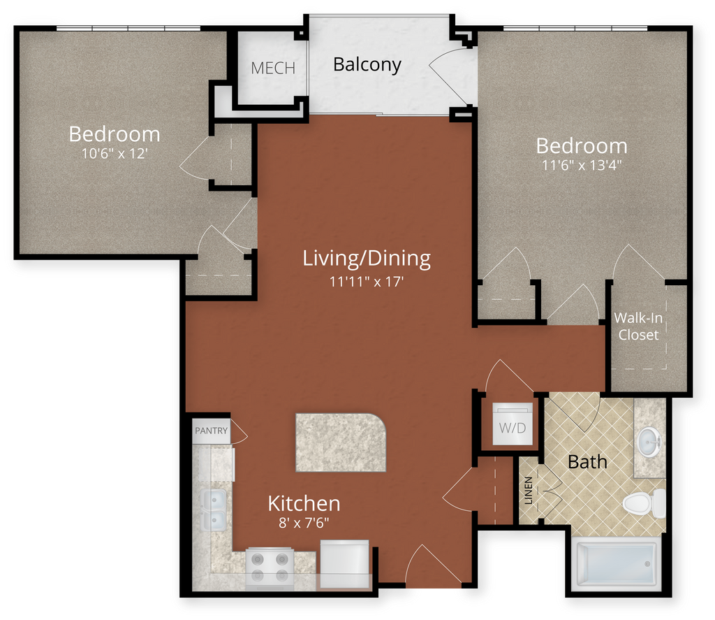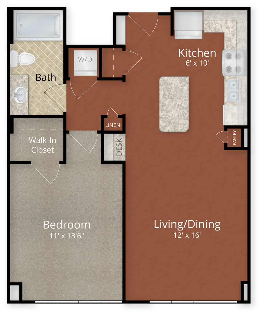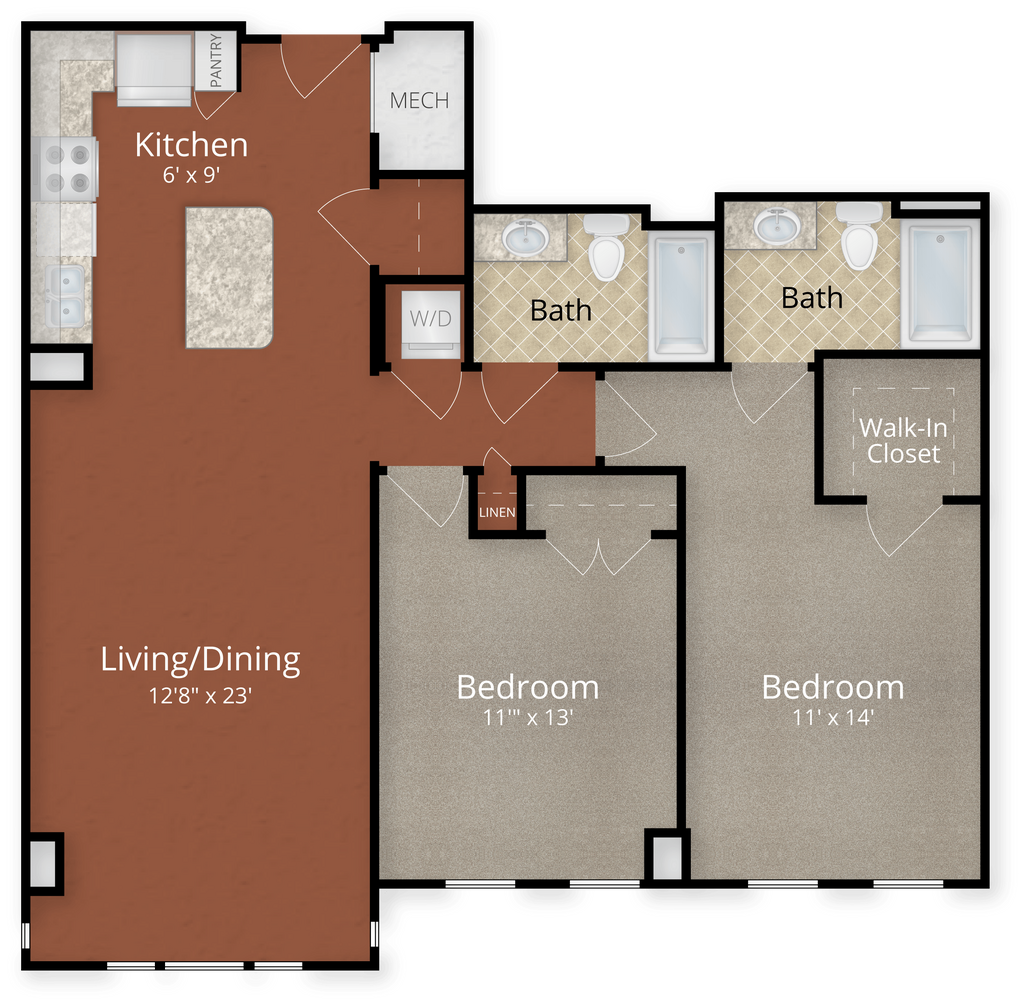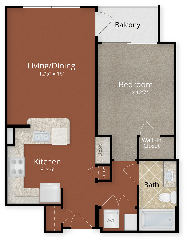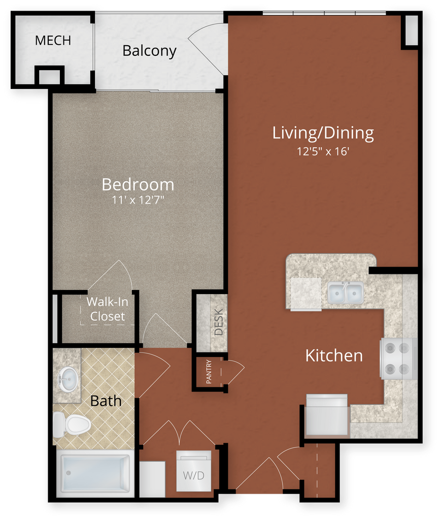1 Bed, 1 Bath, 665-800 sq ftAvailable NowModel Gallery