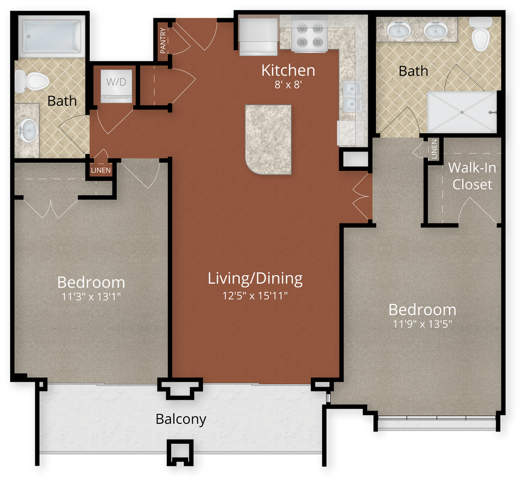 Apartment Model: One Bedroom One BathFrom $1,9551 Bedroom, 1 Bath, 665-800 sq ftAvailable Now![]()