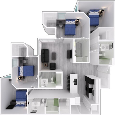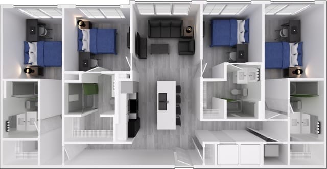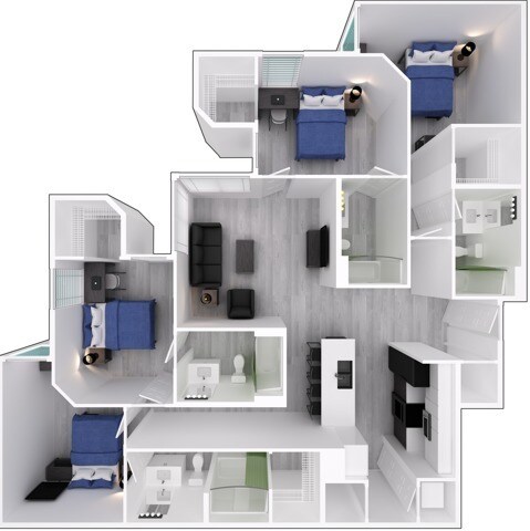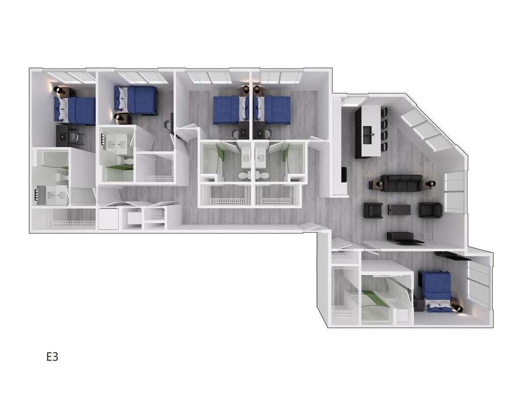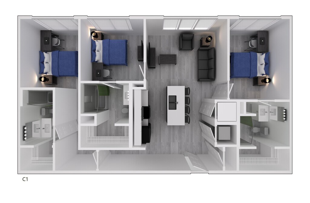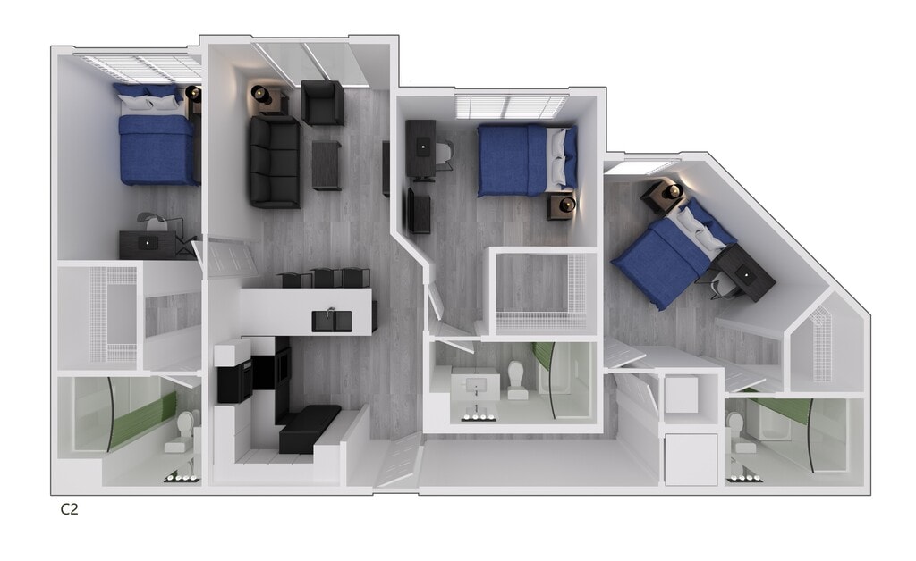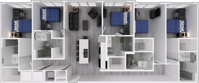 3x3 Premium - Floorplan 1 Apartment Unit: PrivateApartment Model: 3x3 Premium$1,2503 Bedroom, 3 Bath, 1177 sq ftAvailable August 20, 20264 Bedrooms