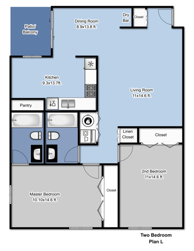 Apartment Model: Plan LFrom $1,4152 Bedroom, 2 Bath, 1170 sq ftUnavailable![]() - Plan L - Floorplan 1