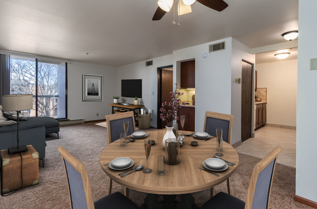 Although just a minute away from the shopping, restaurants and countless conveniences of Brown Deer Road, you will find Park Plaza Apartments carefully tucked away on a peaceful suburban street. In its spacious surroundings you will be able to enjoy many features such as ample green space, an outdoor swimming pool and free surface lot parking. Underground heated parking, as well as separate garages for your parking or storage needs, is also available. Each of the three three-story buildings has secure entry, elevators and additional storage lockers. One bedroom – one bathroom and two bedroom – two bathroom units are available, both with two different floor plans to best suit your preferences. Finally, our capable and courteous full-time management and maintenance staff is on site to handle your every need, big or small. Come discover your new home!