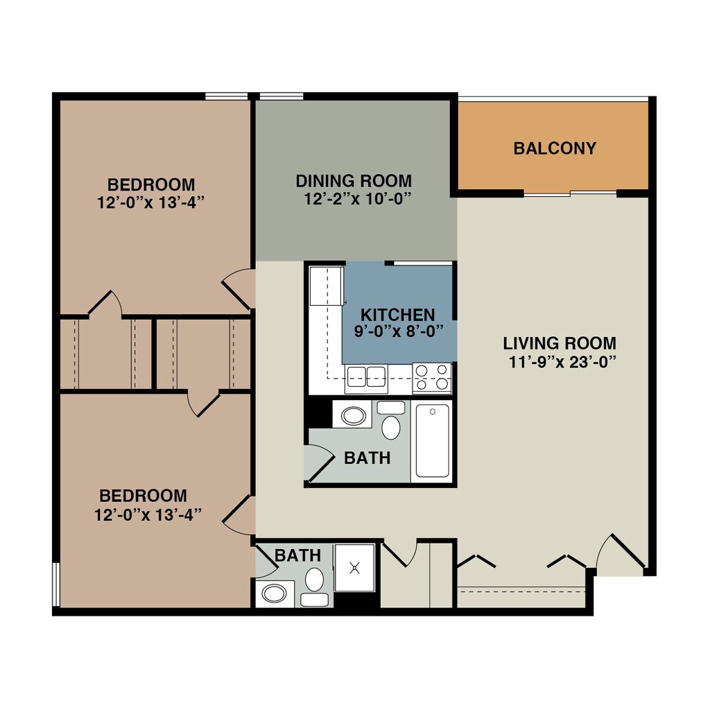 Apartment Model: 2B - 2 BedroomFrom $1,1602 Bedroom, 1.75 Bath, 1108 sq ftAvailable Now![]()