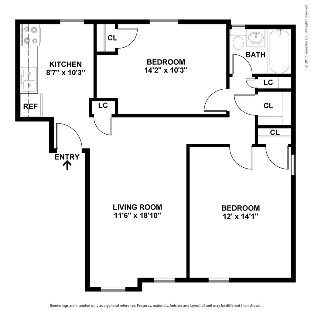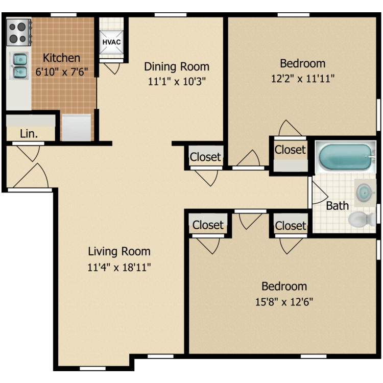 Apartment Model: Two Bedroom2 Bedroom, 1 Bath, 732-771 sq ftUnavailable![]()
