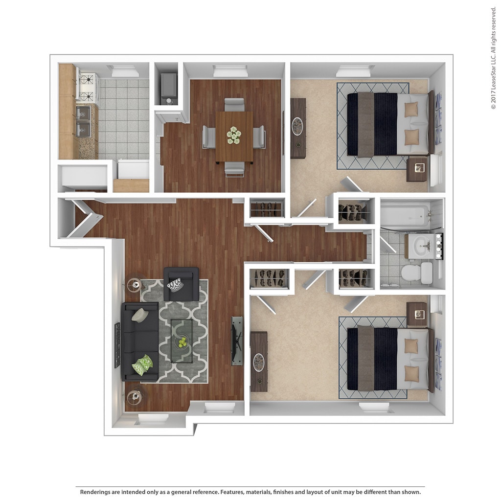 2 Beds, 1 Bath, 732-771 sq ftModel Gallery