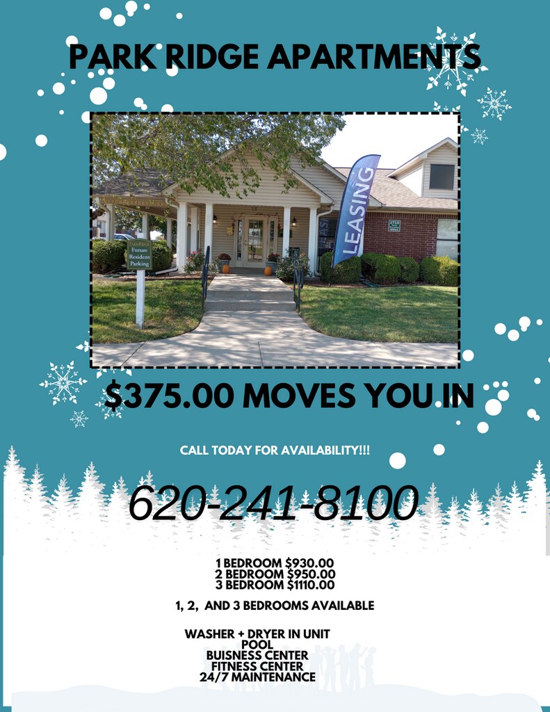 Looking for a new apartment with all the comforts and perks you deserve? At Park Ridge Apartments, you’ll enjoy the perfect blend of modern living and Midwest charm. Wake up to wide-open spaces and end your day with stunning sunsets right in beautiful McPherson County! Explore nearby attractions like the McPherson Wetlands & Wildlife Refuge, where you can hike, fish, or take a tram tour to see American Bison up close. Our apartments are designed with your lifestyle in mind, featuring: In-unit Washer & Dryer for your convenience Refreshing Swimming Pool to relax and unwind Fitness Center to stay active and healthy Cox Quick Connect Internet for fast and reliable connectivity 24-hour Maintenance to keep everything running smoothly Plus, we’re now offering $25/month Preferred Employer Discounts for Students, Pfizer, CHS, Viega, and Johns Manville! Whether you prefer a virtual tour or in-person visit, our team is ready to help you find your next home. Don’t wait—schedule your tour today and experience life at Park Ridge Apartments!