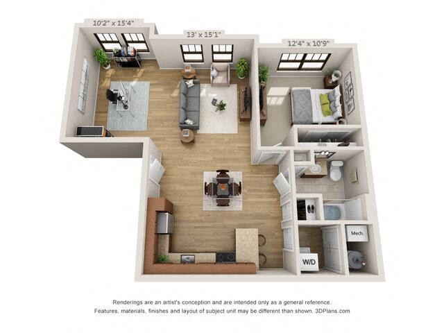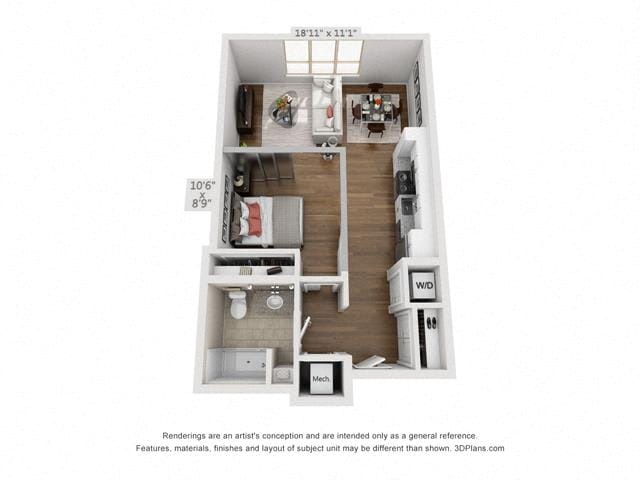 Studio, 1 Bath, 593-594 sq ftAvailable NowModel Gallery