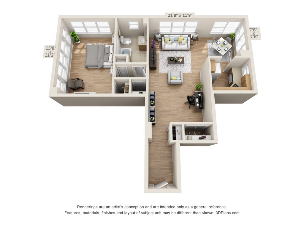Apartment Model: Unit 206$2,2501 Bedroom, 1 Bath, 683 sq ftAvailable November 7, 2025![]()
