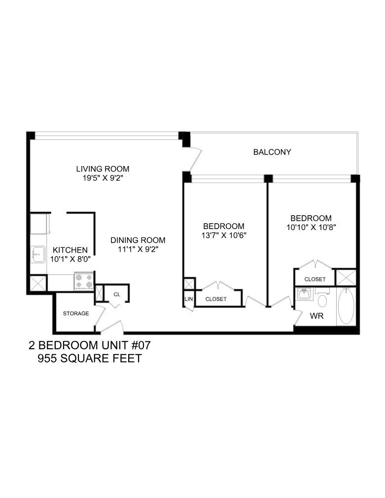 2 Beds, 1 Bath, 955 sq ftAvailable NowLargest 2 BedroomThis is the largest 2 Bedroom at this PropertyModel Gallery