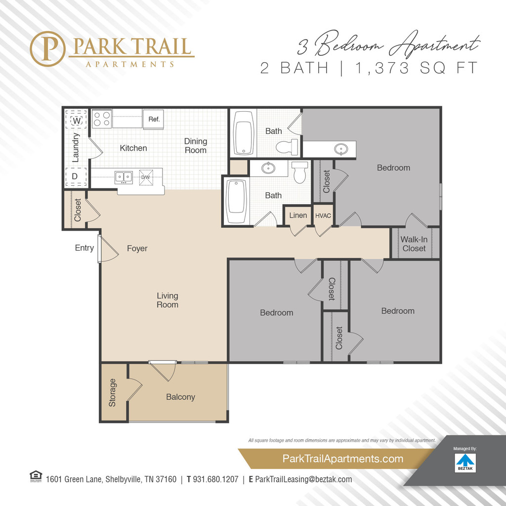 Park Trail Apartments is located in the 37160 Zip code of Shelbyville, TN. This community is professionally managed by BEZTAK Properties