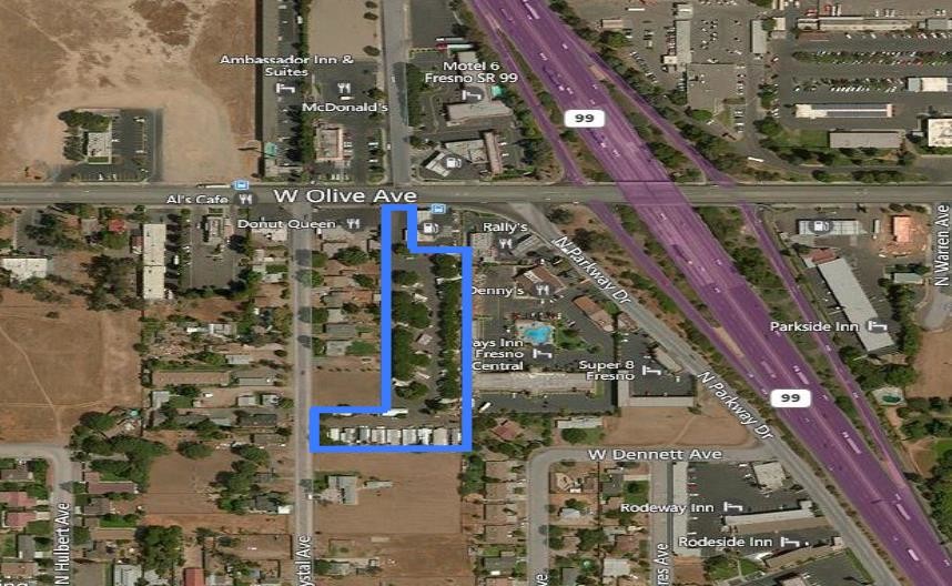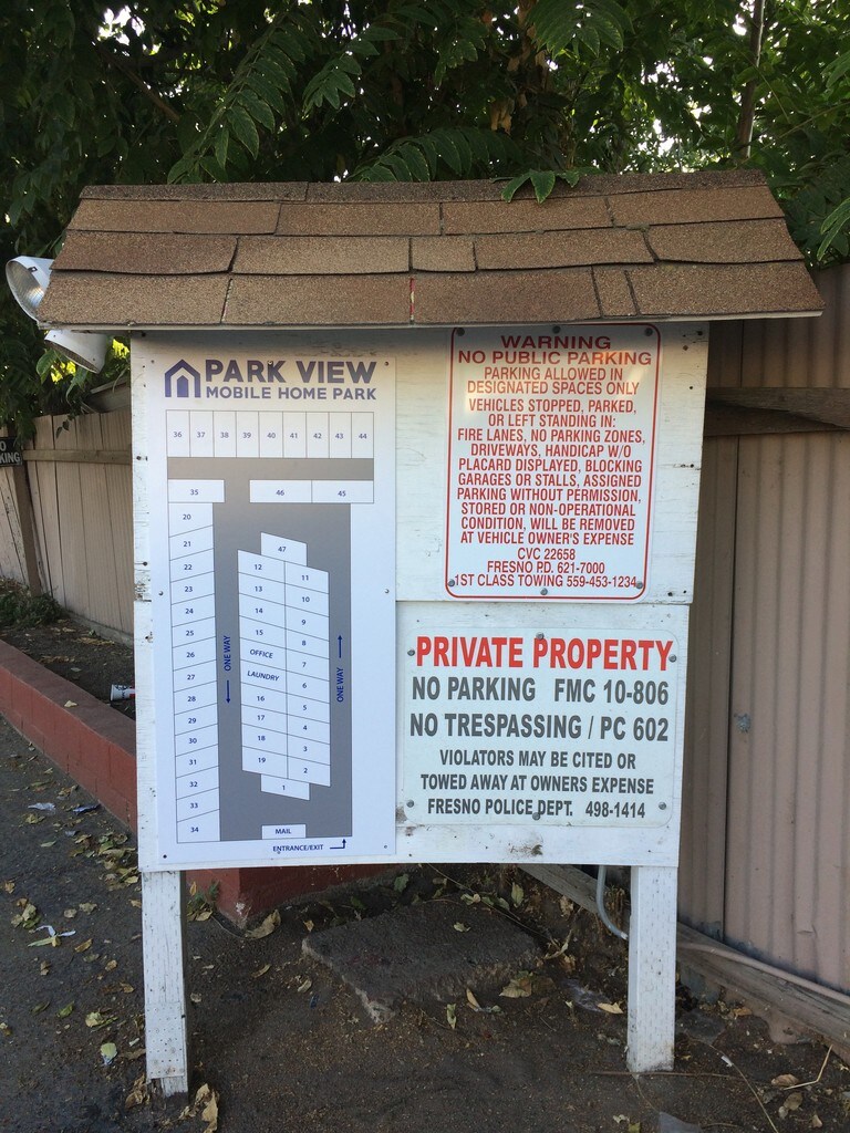 Park View Mobile Home Park provides space rentals for mobile homes, RV's, Travel Trailers, and 5th Wheels within a gated community. Conveniently located at the Route 99 Olive Avenue Exit and less than 1 mile from Chafee Zoo, Roeding Park, and the Tower District. Park View Mobile Home Park has laundry machines located on site, 24/7 security patrols, security cameras and locked mailboxes for each unit.