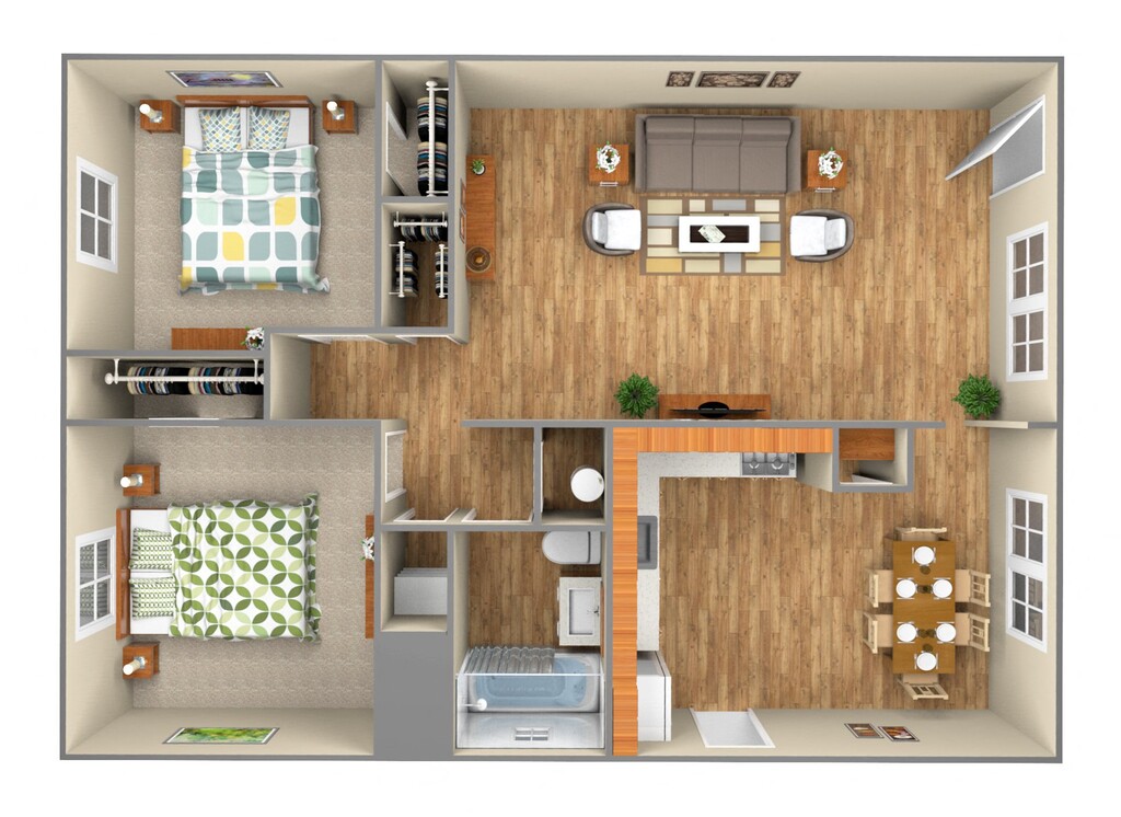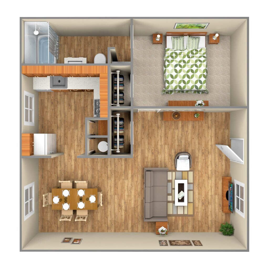 2 Beds, 1 Bath, 850-900 sq ftModel Gallery