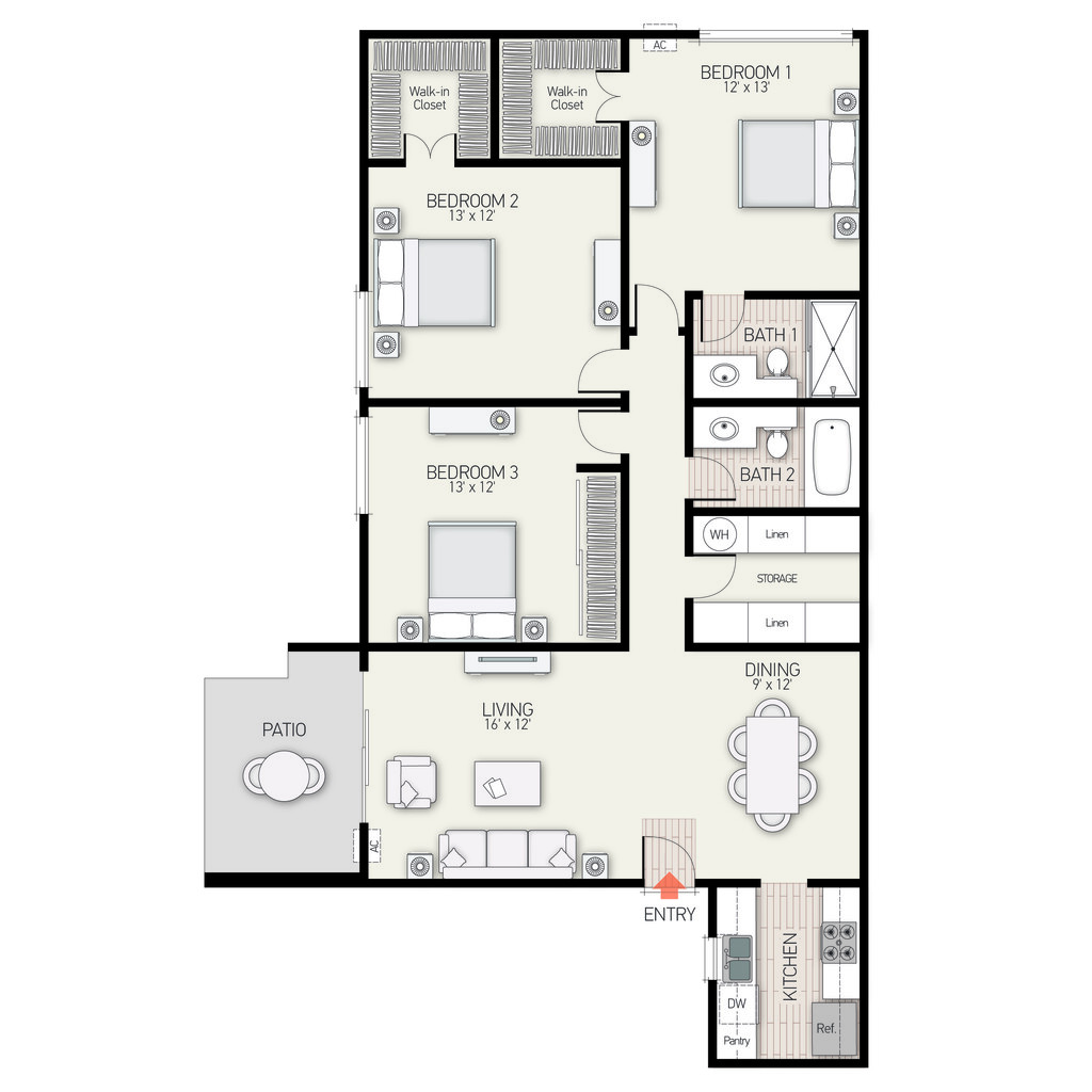 Apartment Model: Plan 3From $2,9402 Bedroom, 1 Bath, 1060 sq ftAvailable Now![]()