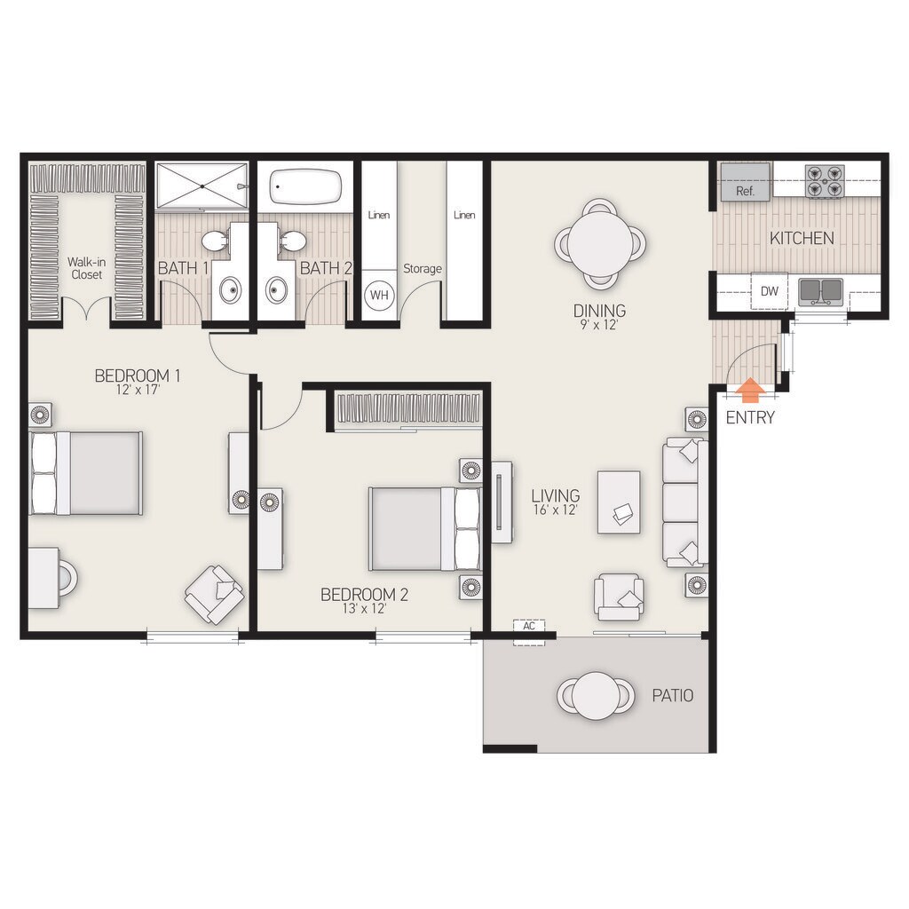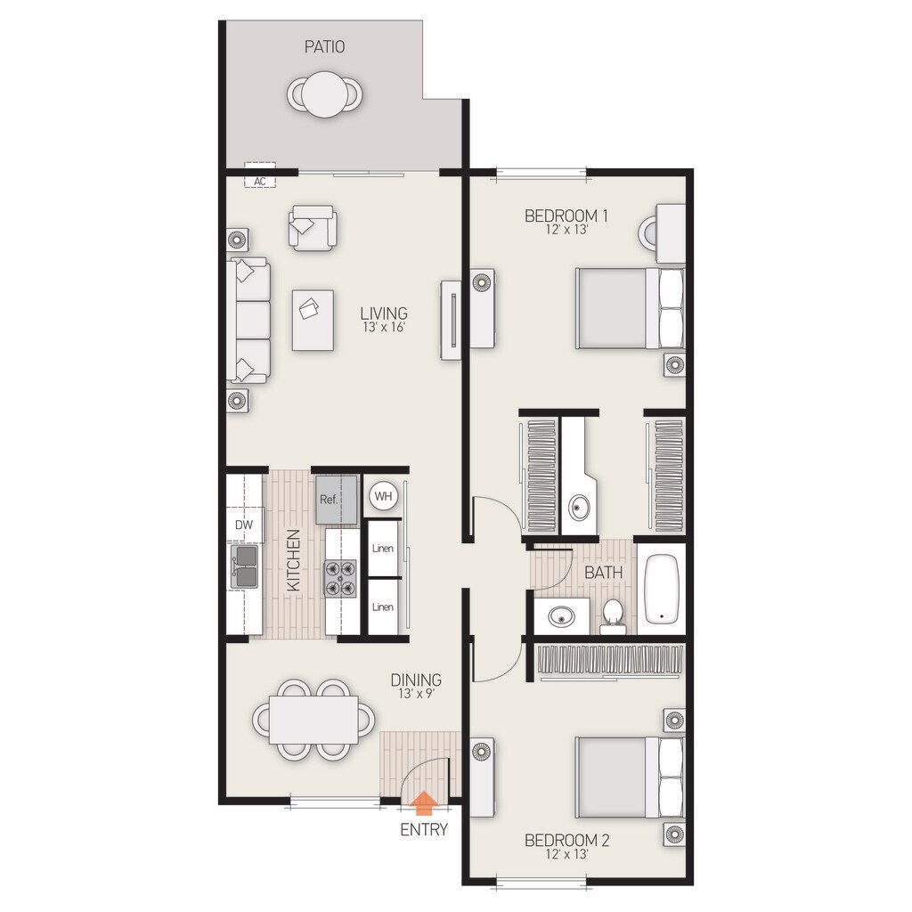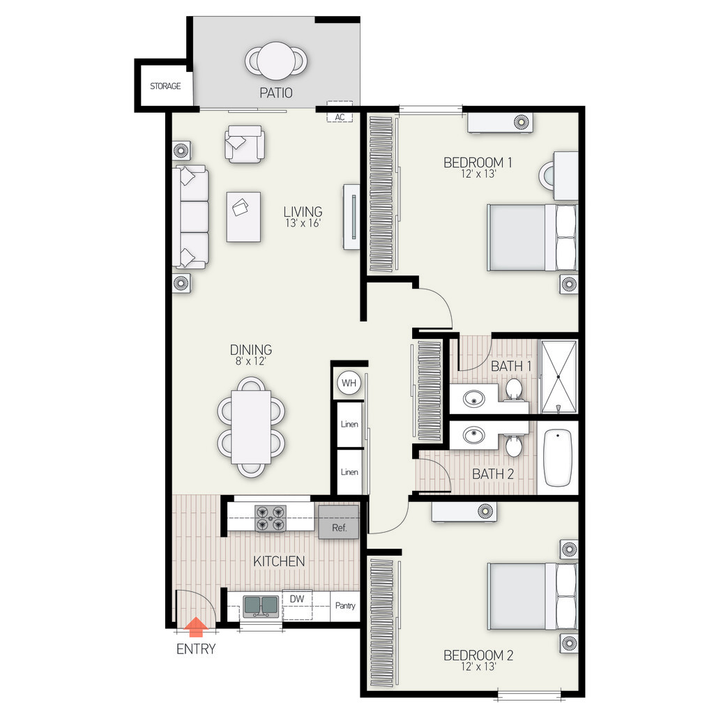2 Beds, 1 Bath, 1060 sq ftAvailable NowCheapest 2 BedroomThis is the cheapest 2 Bedroom at this PropertyModel Gallery