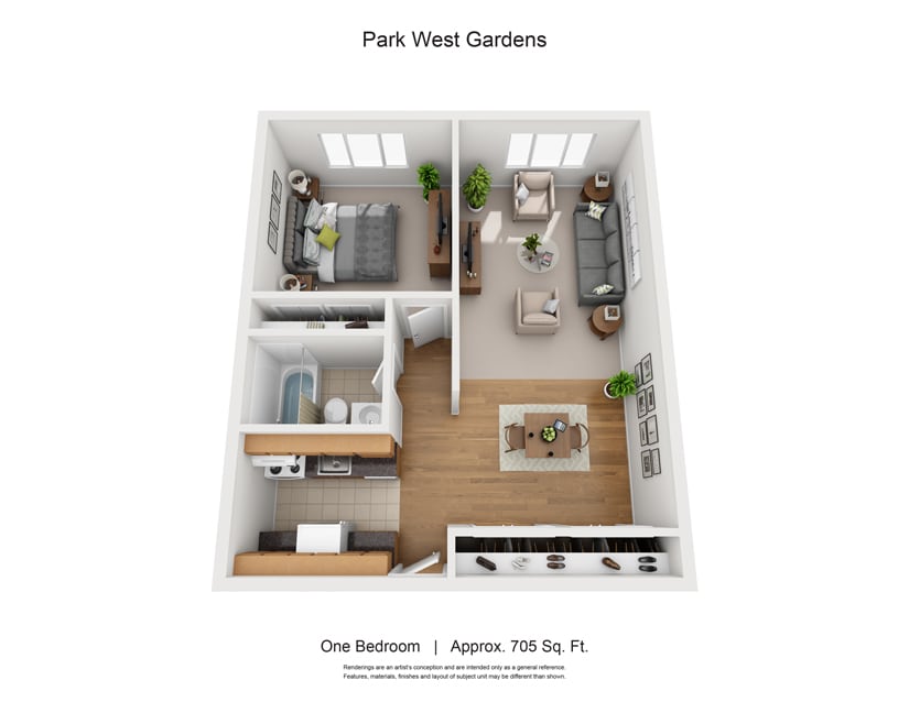 1 Bed, 1 Bath, 700 sq ftModel Gallery