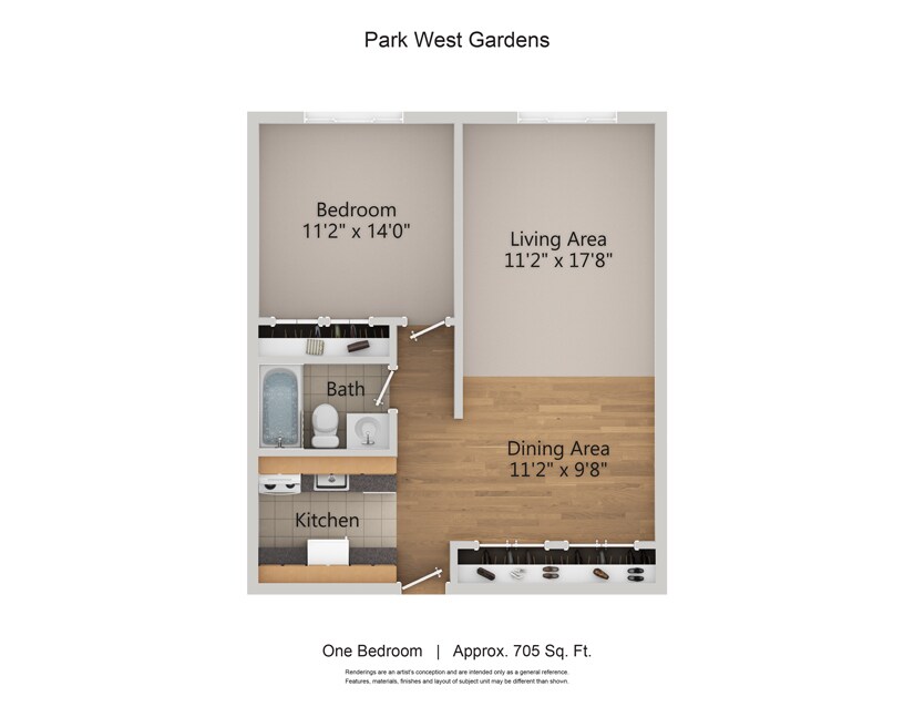 Apartment Model: One Bedroom Large1 Bedroom, 1 Bath, 700 sq ftUnavailable![]()