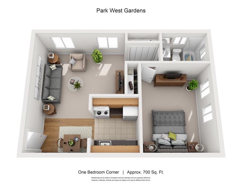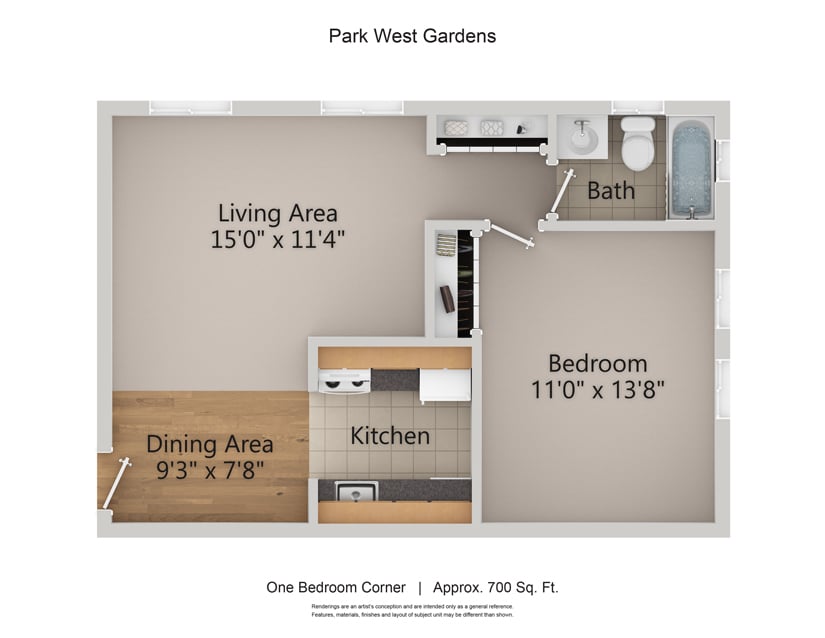Apartment Model: One Bedroom Corner1 Bedroom, 1 Bath, 700 sq ftUnavailableFloorplansPhotos![]()