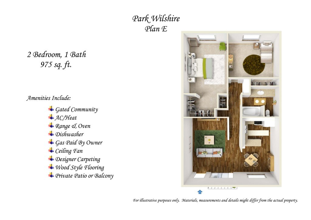 2 Bedrooms 1 Bathroom Plan E - Floorplan 1 ![]()