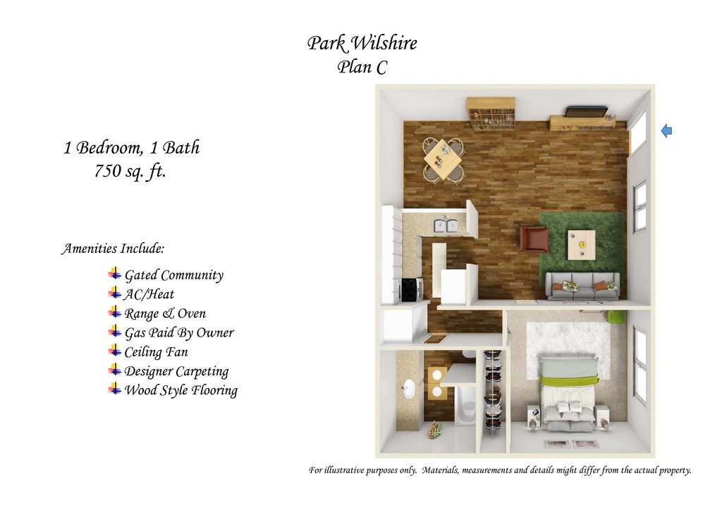 1 Bedrooms 1 Bathroom Plan C - Floorplan 1 ![]()