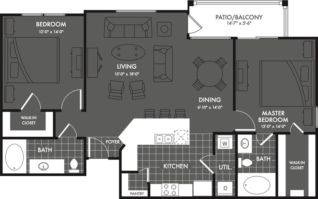 1 Bed, 1 Bath, 726 sq ftAvailable NowModel Gallery