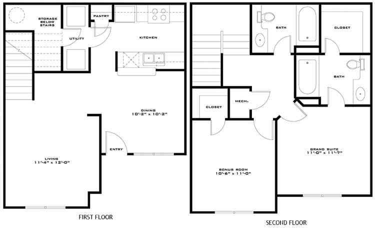 1 Bedroom 1 Bathroom - Floorplan 1 2 Bedrooms