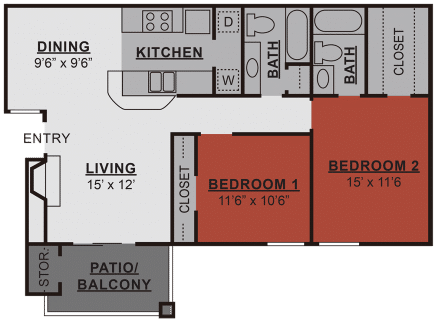 Apartment Model: B2From $1,2502 Bedroom, 2 Bath, 924 sq ftAvailable Now![]()