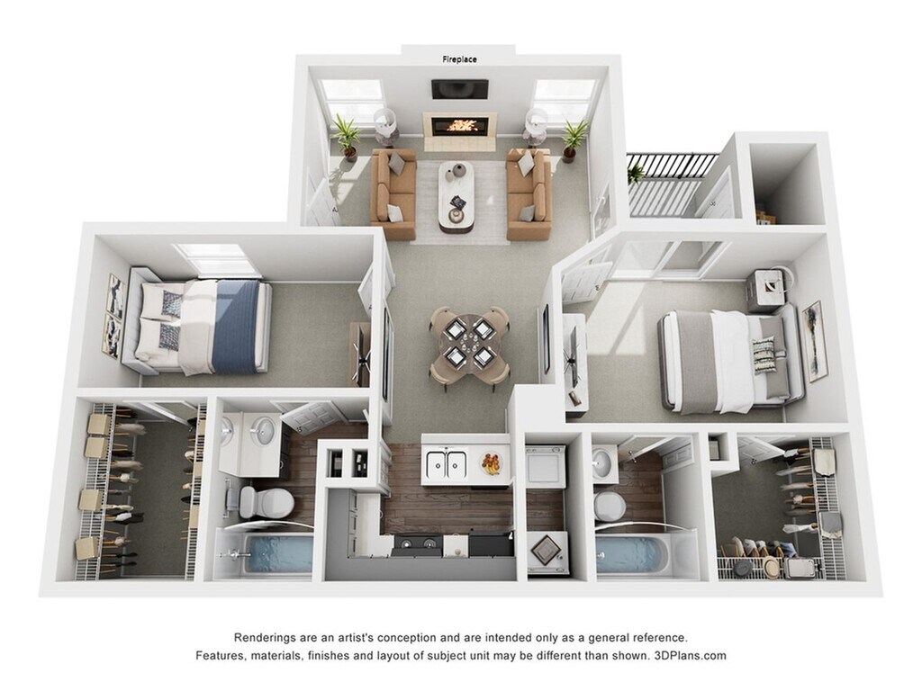 Apartment Model: Foxtail2 Bedroom, 2 Bath, 1052 sq ftUnavailableFloor plans are artist's rendering. All dimensions are approximate. Actual product and specifications may vary in dimension or detail. Not all features are available in every rental home. Please see a representative for details.