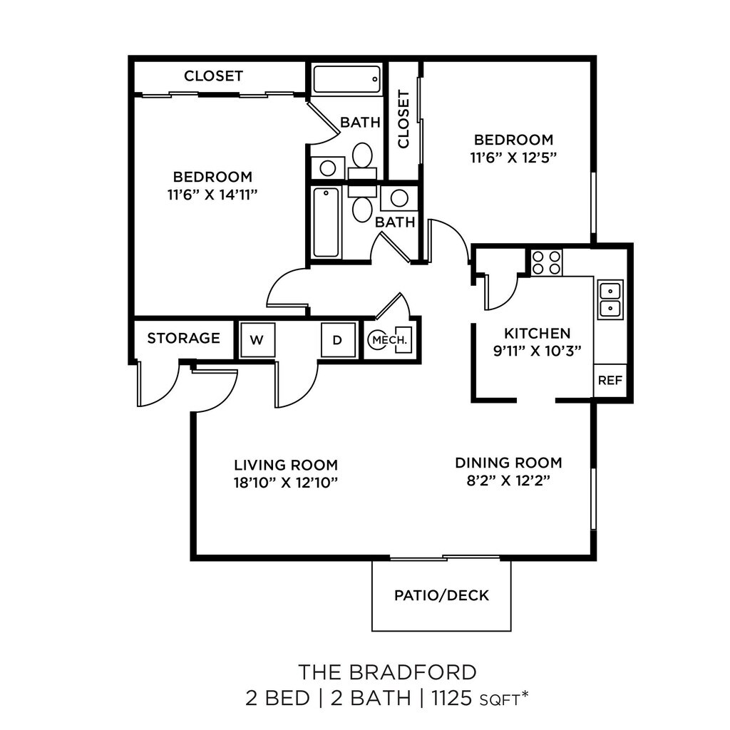 Apartment Model: BradfordFrom $1,0002 Bedroom, 2 Bath, 1125 sq ftAvailable Now![]()