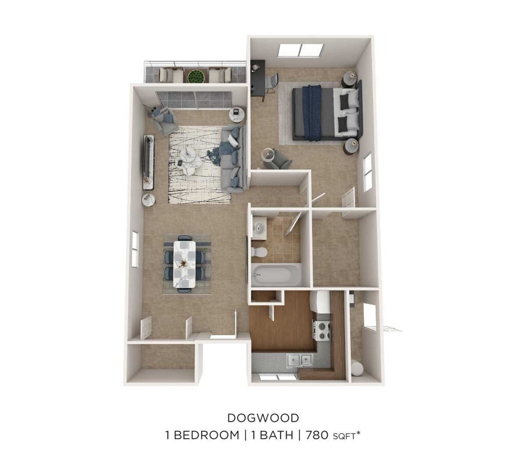 Apartment Model: DogwoodFrom $9501 Bedroom, 1 Bath, 780 sq ftAvailable Now![]()