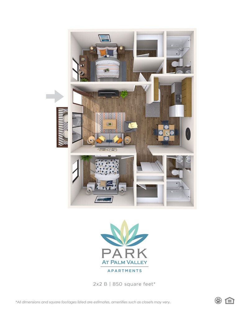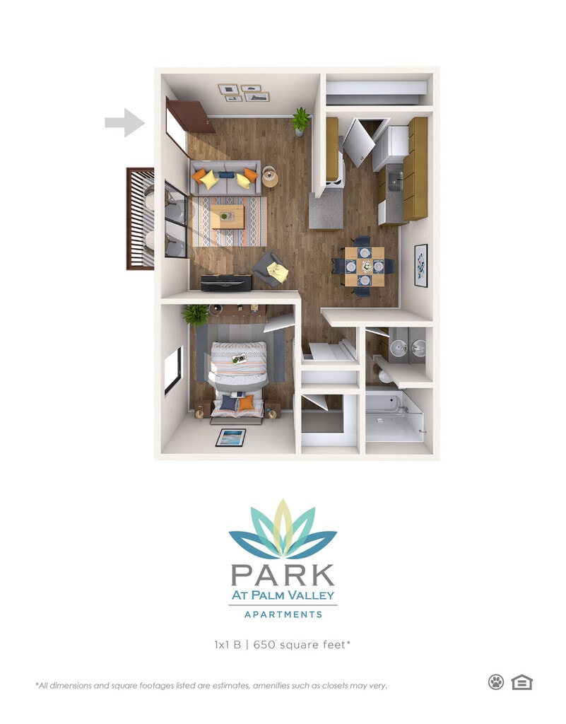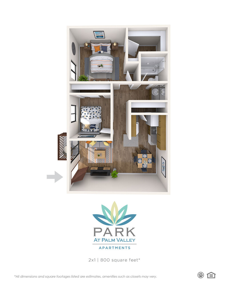 Park at Palm Valley offers 1 to 2 Bedroom apartments starting from $830 and having 605–850 sq ft. Here is the current pricing and availability: