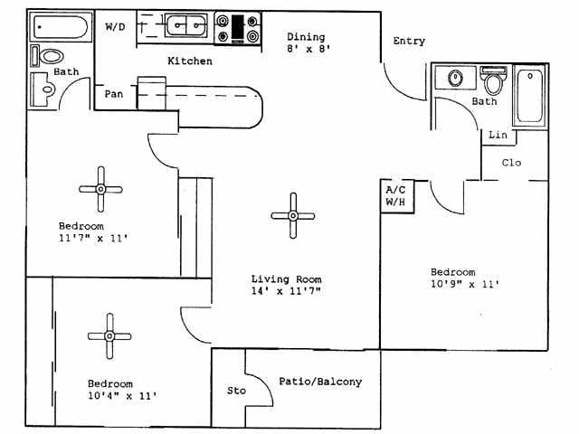 3 Beds, 2 baths - Floorplan 1