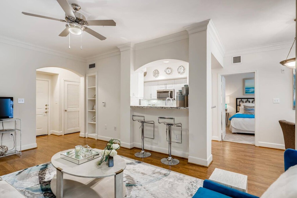 Park at River Oaks offers an array of thoughtfully planned resident services and amenities that set the standard for luxury apartments in Houston within the illustrious River Oaks neighborhood. Featuring a courtyard-facing design surrounded by lush landscaping, our charming gated community exudes peace and tranquility in the middle of it all. If you're looking for River Oaks apartments with 10-foot ceilings, classic crown molding, homey interior archways, and large bay windows with scenic pool views, pay us a visit today. Our Houston apartments are ideally situated between River Oaks, Greenway Plaza, and Upper Kirby with direct access to I-69 in easy reach from The Galleria, Downtown Houston and Texas Medical Center.