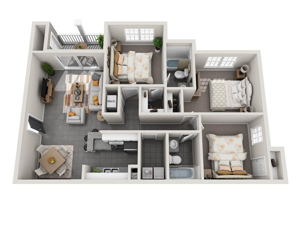3 Beds, 2 Baths, 1260 sq ftAvailable NowModel Gallery