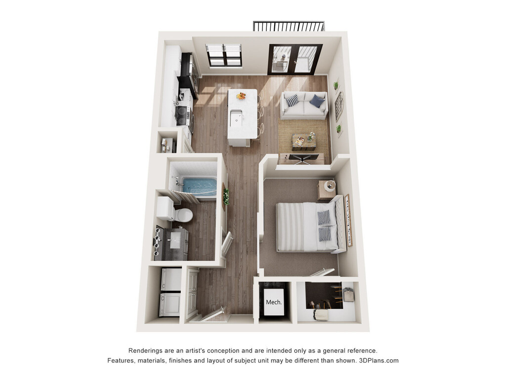 Studio, 1 Bath, 595 sq ftAvailable NowModel Gallery