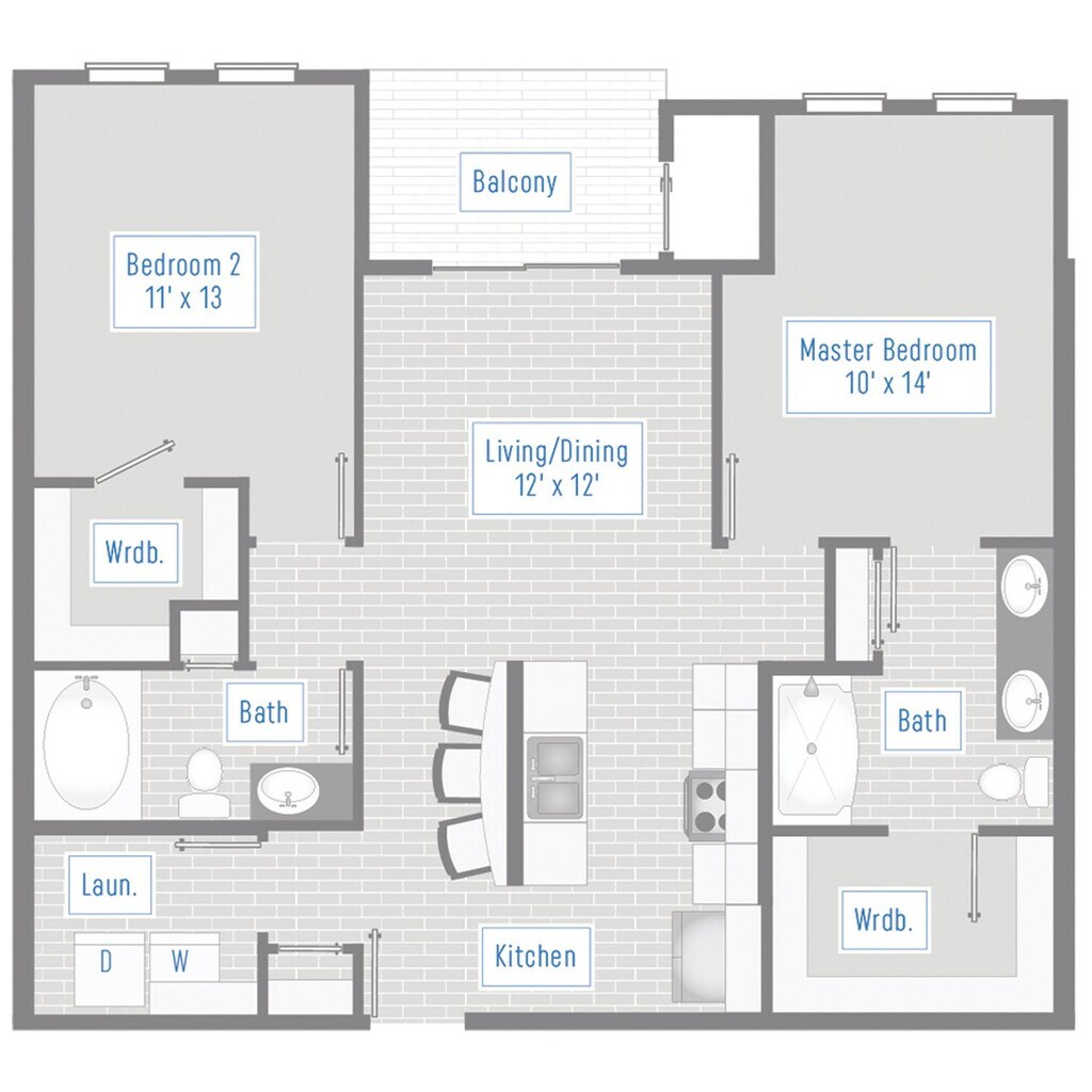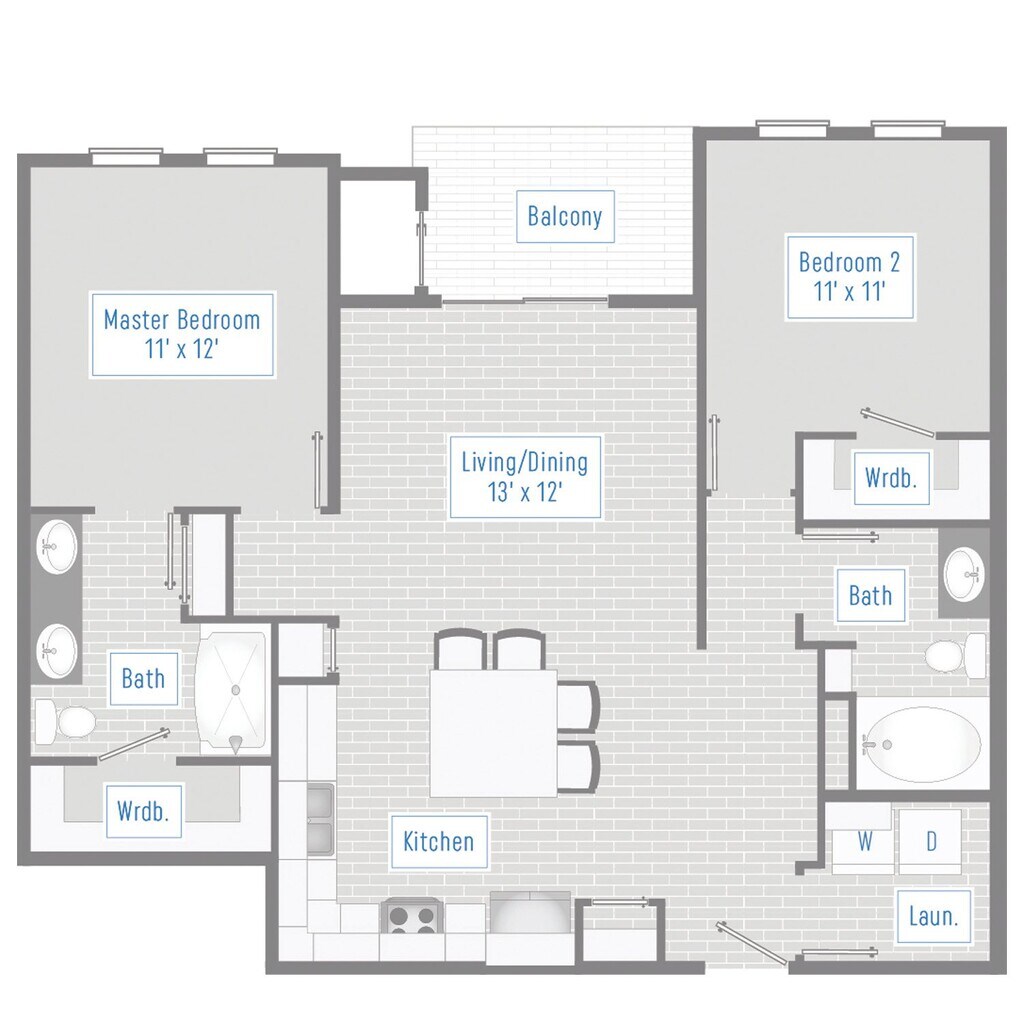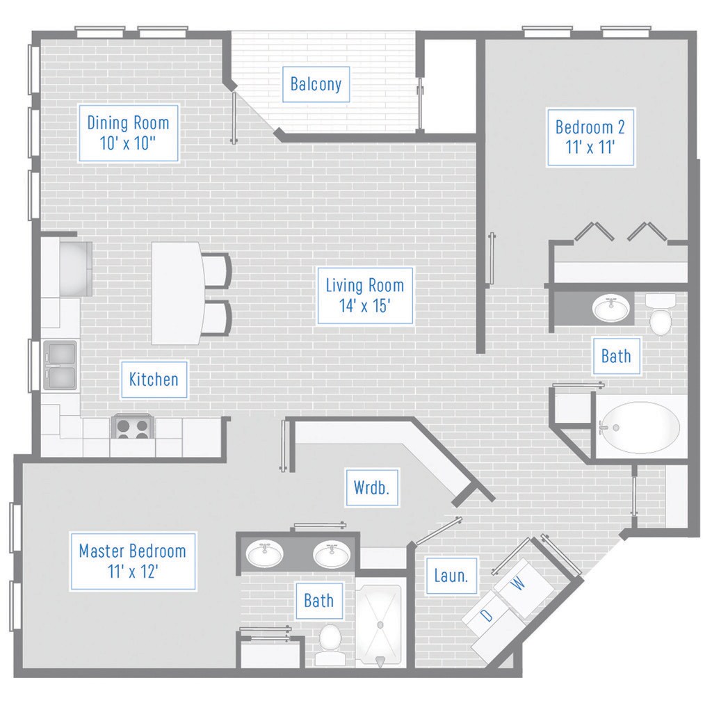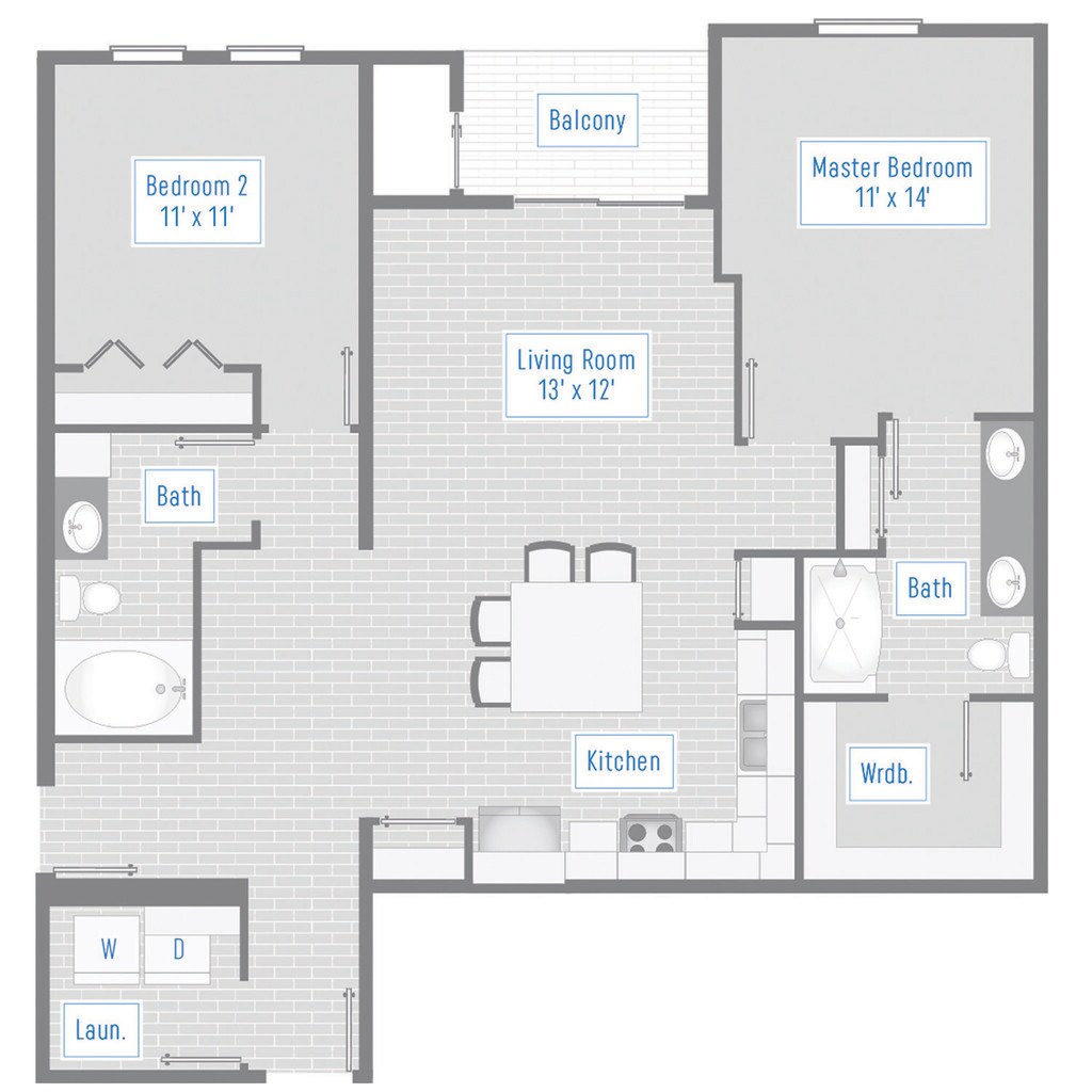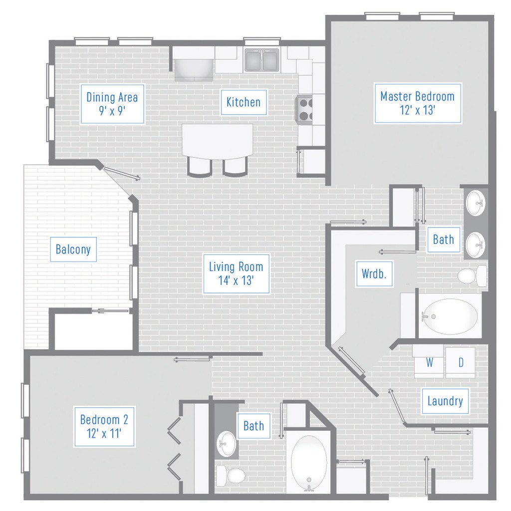 1 Bed, 1 Bath, 873 sq ftAvailable NowLargest 1 BedroomThis is the largest 1 Bedroom at this PropertyModel Gallery