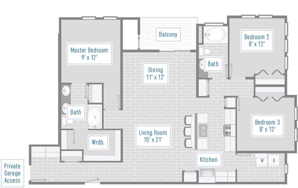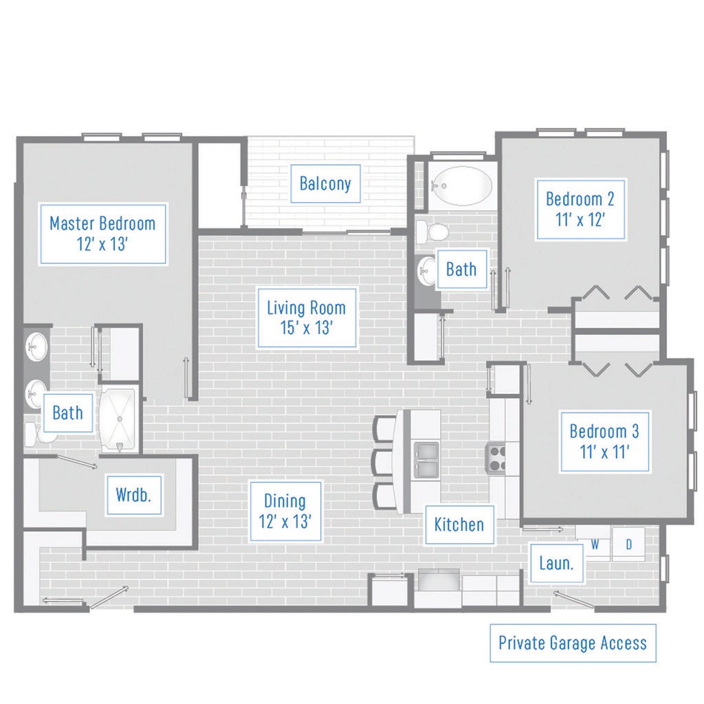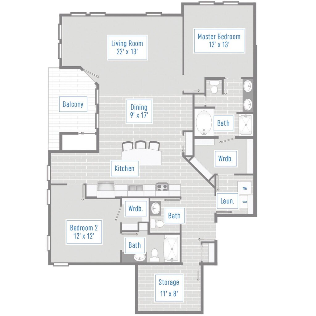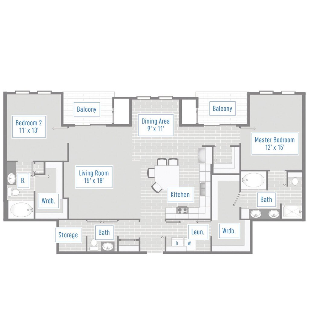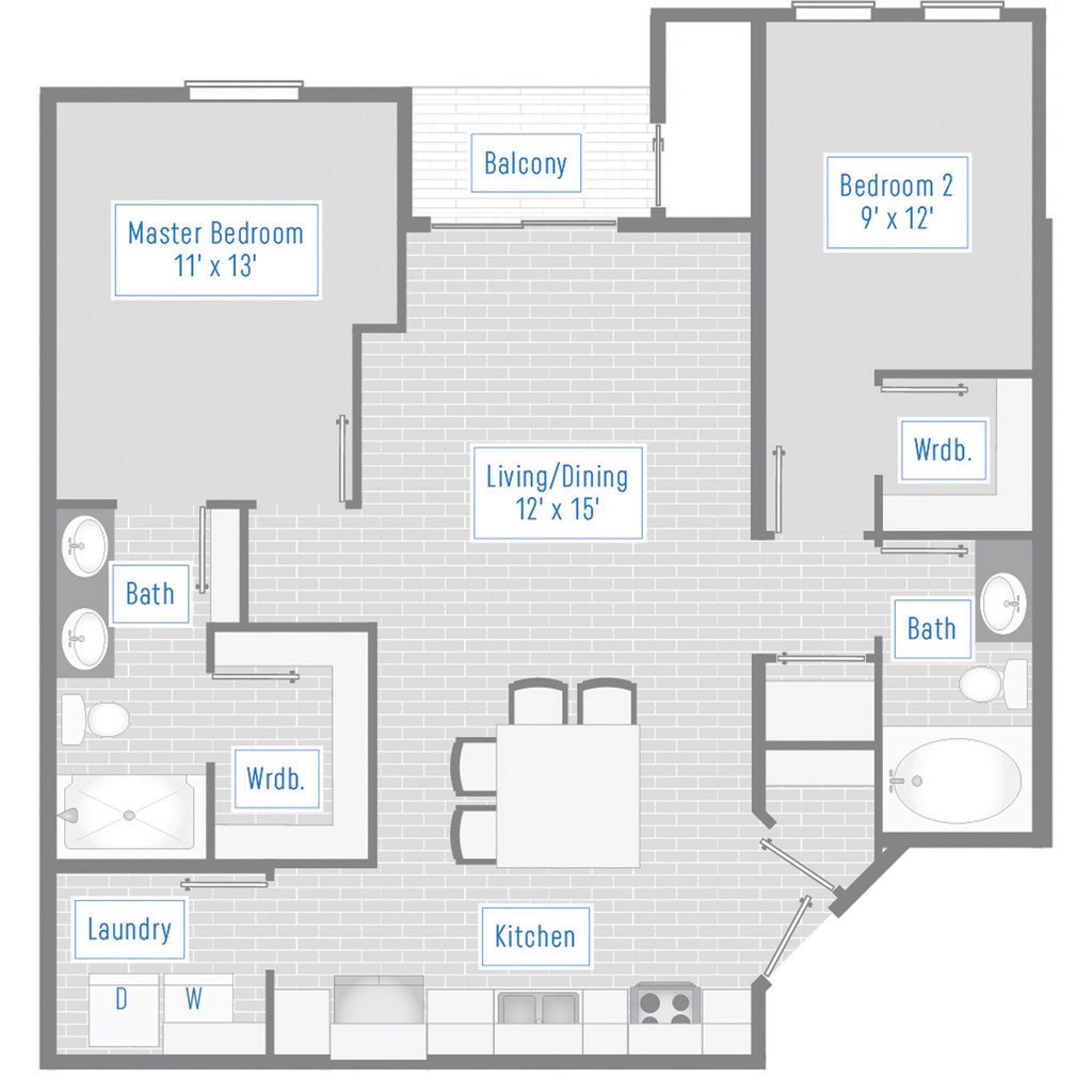 1 Bed, 1 Bath, 873 sq ftAvailable NowLargest 1 BedroomThis is the largest 1 Bedroom at this PropertyModel Gallery