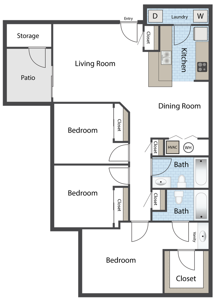3 Beds, 2 Baths, 1154 sq ftModel Gallery