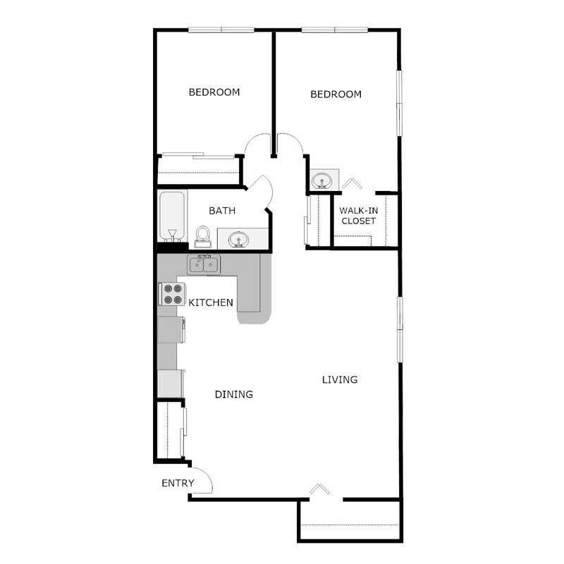 2 Beds, 1 Bath, 975 sq ftModel Gallery