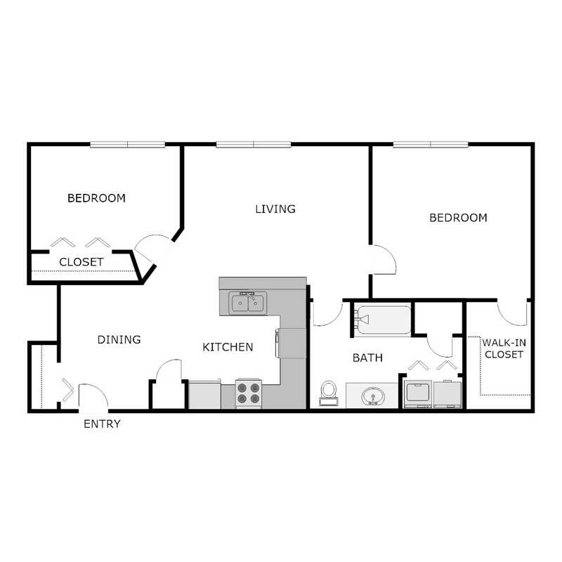 2 Beds, 1 Bath, 1100 sq ftAvailable NowModel Gallery