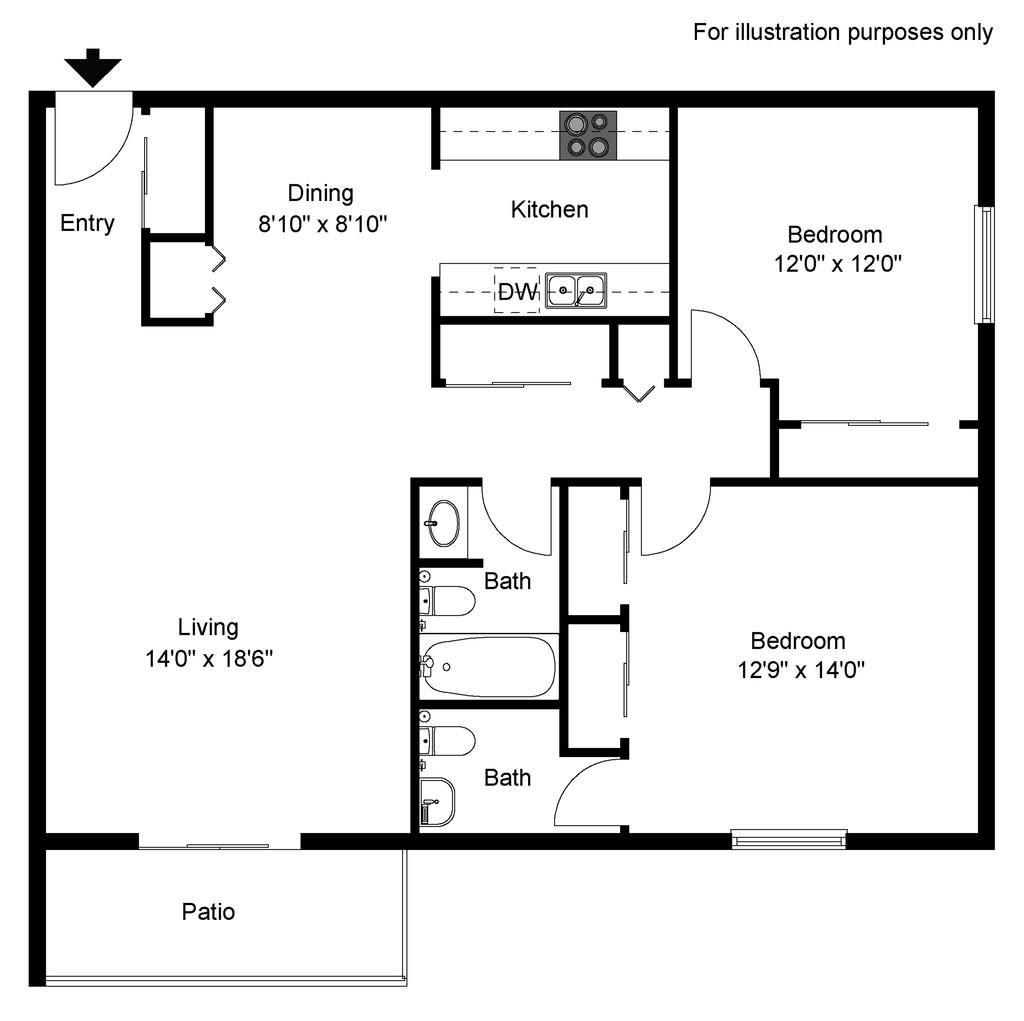2 Beds, 1.5 Baths, 1400 sq ftLargest 2 BedroomThis is the largest 2 Bedroom at this PropertyModel Gallery