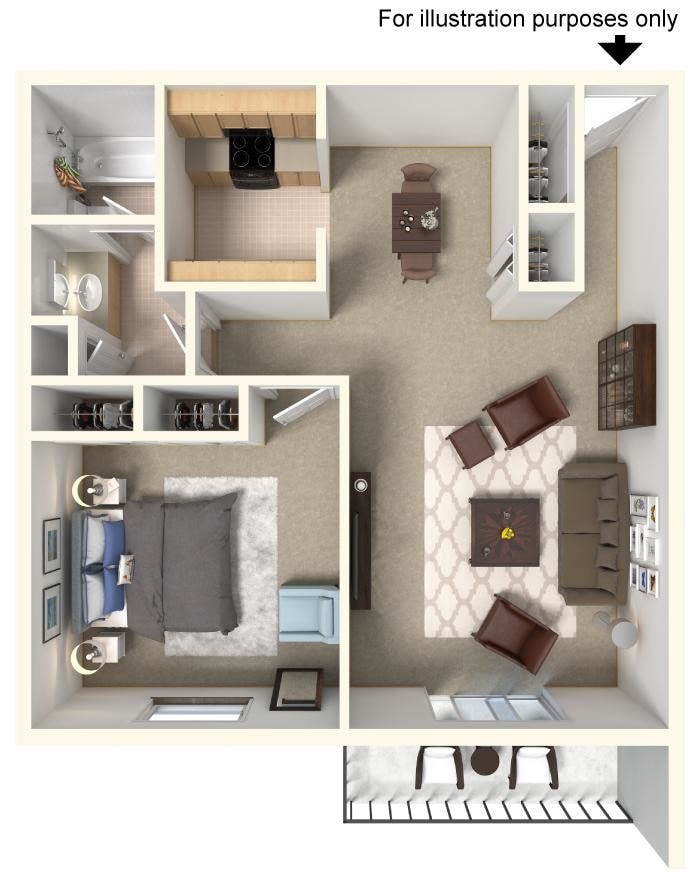 1 Bed, 1 Bath, 840 sq ftModel Gallery