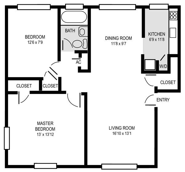 2 Beds, 1 Bath, 856 sq ftModel Gallery
