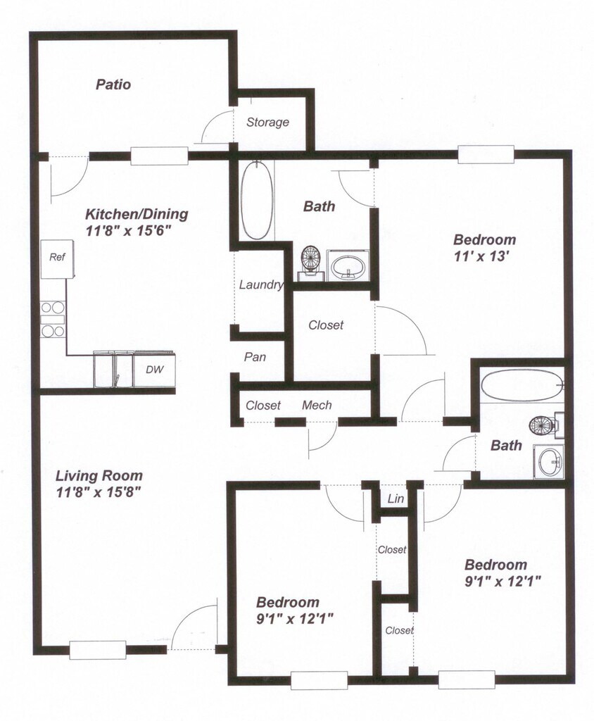 Apartment Model: C2 Classic3 Bedroom, 2 Bath, 1094 sq ftAvailable Now![]()