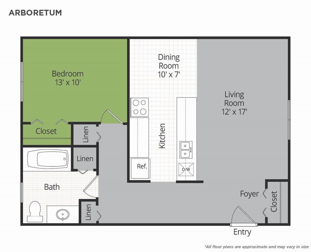 Apartment Model: ArboretumFrom $1,1051 Bedroom, 1 Bath, 800 sq ftAvailable NowFloorplansPhotos![]()