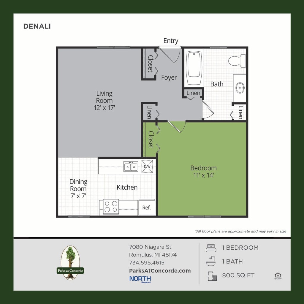 At Parks at Concorde, our one and two-bedroom floor plans are designed to make living here as convenient and easy as possible. Our apartment homes are uniquely designed for families, roommates, or single living, so you'll be sure to find your perfect space. Included with every floor plan, you will find a variety of stylish features, from spacious floorplans to updated flooring, ensuring a modern look. Every one of our apartments provides everything you'll need to make yourself at home at Parks at Concorde.