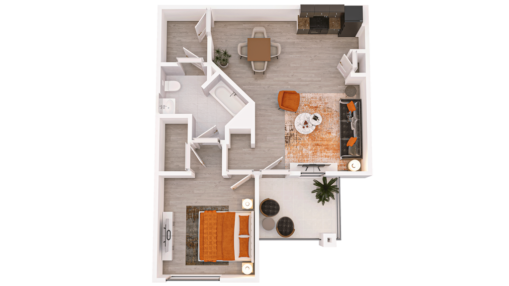 1 Bed, 1 Bath, 576 sq ftModel Gallery