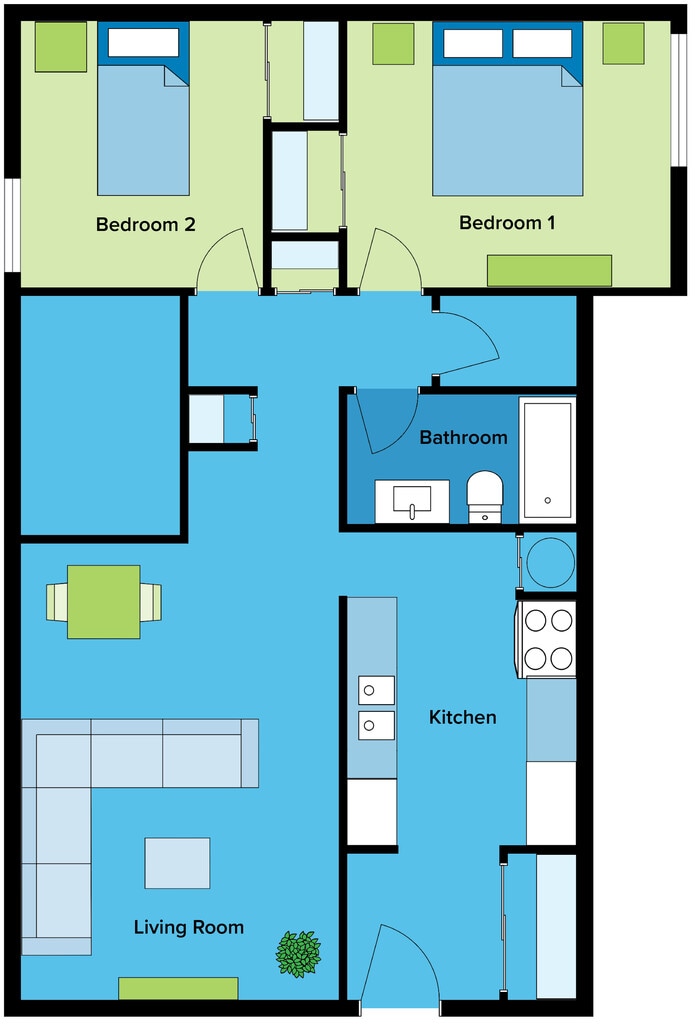 Two Bedroom - 2B - Floorplan 2 Apartment Unit: 2-20Apartment Model: Two Bedroom - 2B$9452 Bedroom, 2 Bath, 900 sq ftAvailable Now