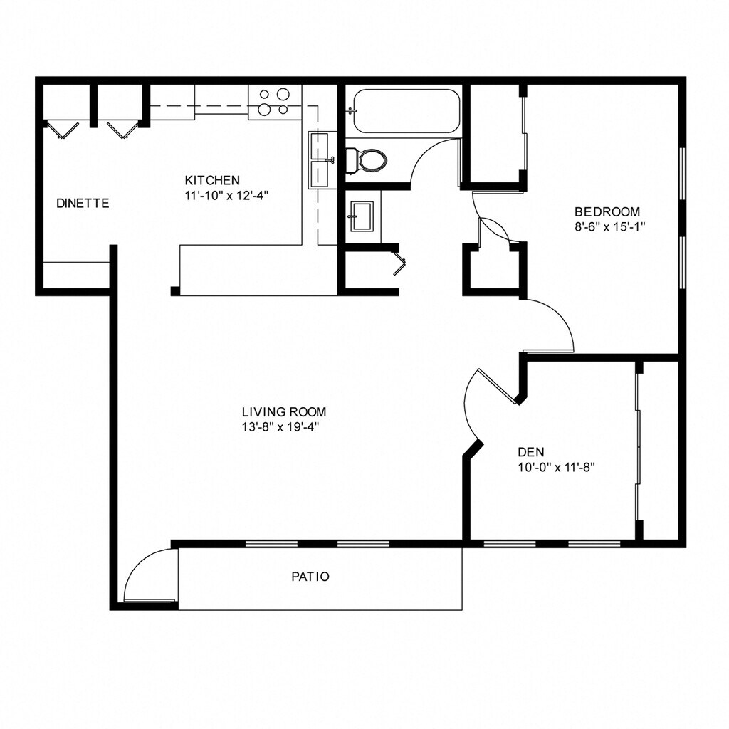 Phase 3 - 1 Bed, 1 Bath + Den Lower - Floorplan 2 ![]()