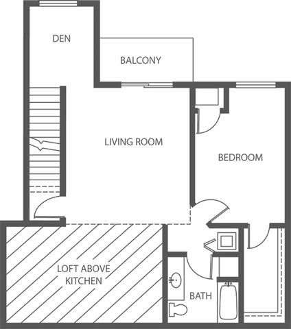 Phase 2 - 1 Bed, 1 Bath + Den Creekside Loft - Floorplan 1 ![]()