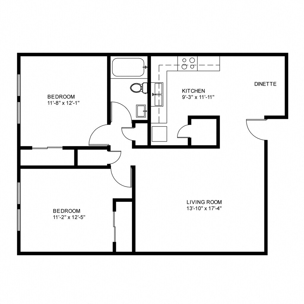 Phase 1 - 1 Bed, 1 Bath Garden - Floorplan 2 ![]()