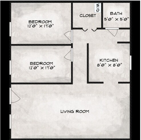2 Bedroom 1 Bath - Floorplan 1 2 Bedroom 2 Bath
